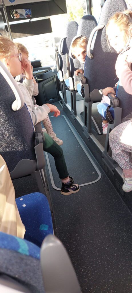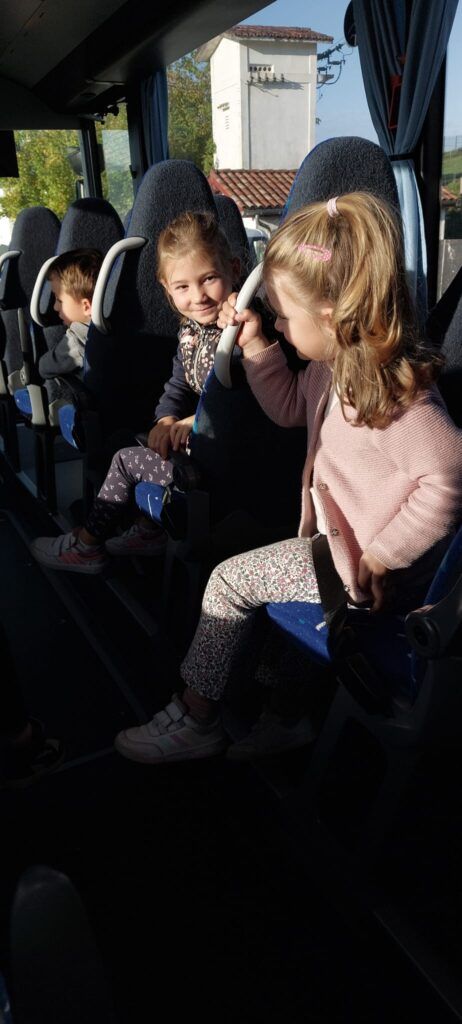 En ce début de matinée du 13 octobre, les enfants de maternelle partent pour l’aventure. Direction Saint Jean le Vieux pour assister au spectacle participatif “Plisti, Plasta”.